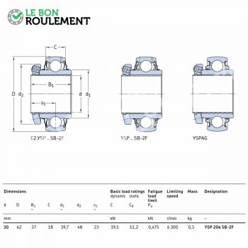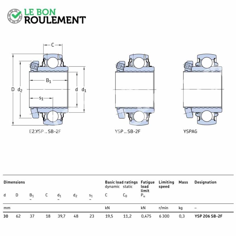 Rodamiento de soporte de marca SKF de alta calidad. Las cotas en mm son 30x62x37/18. Su jaula exterior es abombada y su fijación se hace con un anillo de fijación. El anillo interior se sale de ambos lados del rodamiento.