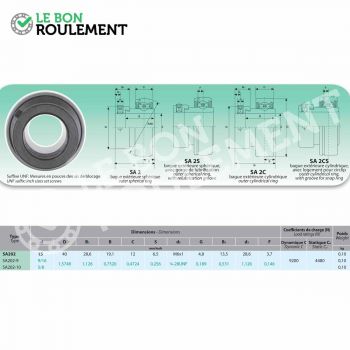 Rodamiento de soporte de marca genérica. Las cotas en mm son 15x40x19,1/12. Su jaula exterior es abombada y su fijación se hace con un anillo excén... Más