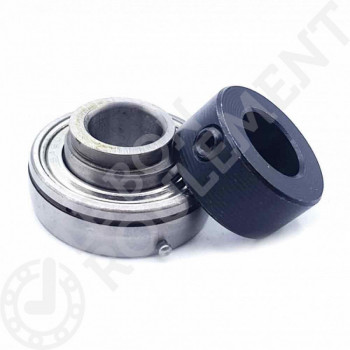 Rodamiento de soporte de marca genérica. Las cotas en mm son 15x40x19,1/12. Su jaula exterior es abombada y su fijación se hace con un anillo excéntrico. El anillo interior se sale por un solo lado del rodamiento.