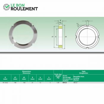Tuerca de fijación con almena de acero inoxidable, de marca genérica especialmente utilizada sobre manguitos de fijación. Su roscado es M125X2, par... Más