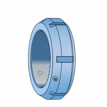 Tuerca de fijación de precisión, de marca genérica. Su roscado es M45X1,5, para un diámetro exterior de 70 mm y un espesor de 22 mm.