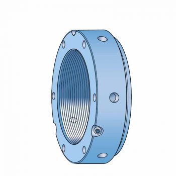 Tuerca de fijación de precisión, de marca genérica. Su roscado es M100X2, para un diámetro exterior de 130 mm y un espesor de 32 mm. Más