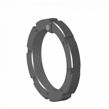 Tuerca de fijación, de marca genérica. Su roscado es M280X4, para un diámetro exterior de 350 mm y un espesor de 38 mm. Más