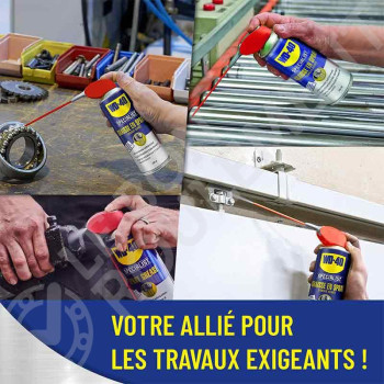 La Grasa en Spray Larga Duración WD-40 Specialist nació de la fórmula del producto multiuso WD-40 combinada con agentes lubricantes y aditivos anti desgaste compatibles con presiones elevadas. Gracias a su textura gel, ofrece una lubricación extremadamente durable, ideal para suprimir chirridos y puntos de fricción, así como una excelente protección contra la corrosión y la oxidación. Su fuerte adherencia así como sus capacidades a obstruir hace que el producto no corre y resiste al agua incluso sobre las superficies verticales. Utilizable entre -20°C y +115°C, este producto está particularmente recomendado en condiciones exteriores y cuando una aplicación ulterior se vuelve dificil por culpa de condiciones de aceso a la pieza.