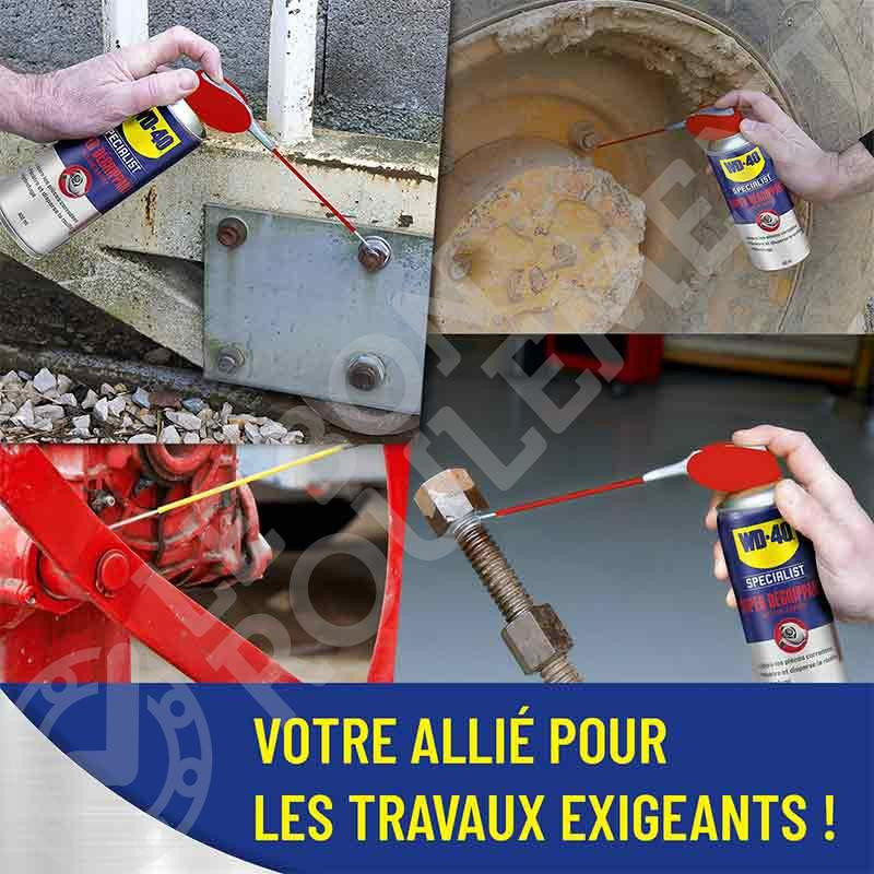 El Super Desatascador WD-40 Specialist penetra rápidamente y libera las piezas con una eficacia elevada. Gracias a una muy baja tensión superficial, su fórmula se adapta en casos dificiles, tales como el óxido o la corrosión. Resistente al agua, evita el óxido y la corrosión y se puede utilizar sobre todos los metales y la mayoría de las pinturas de superficie.