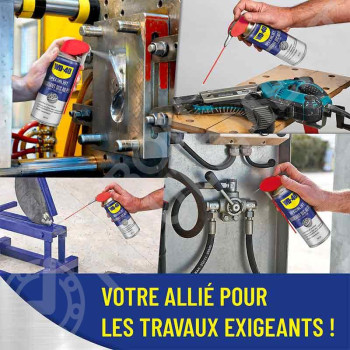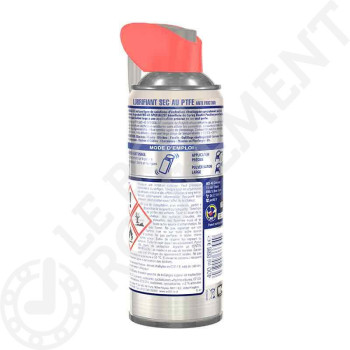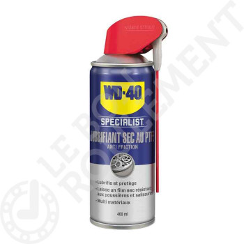 El lubricante Seco al PTFE WD-40 Specialist contiene del Poly Tetra Fluor Etileno que, al dejar un film secoo sobre el soporte, permite una lubricación mejorada sin atraer los polvos, suciedades o aceites. Seca rápidamente y se puede también utilizar como agente de desmoldado. Compatible con todos los metales, plásticos y el vidrio, se puede utilizar en una gran amplitud de temperaturas (-45°C a +260°C), y su fórmula está certificada H2 por la NSF.