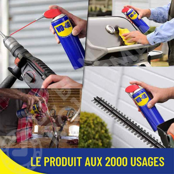 El producto multiuso WD-40 protege el metal del óxido y de la corrosión, se inserta en las partes bloqueadas, frena la húmedad y lubrica casi todo. elimina aun la grasa, la suciedad y aùn más de la mayoría de las superficies. Con la válvula a 360 ° que permite una utilización a la vertical o al revés, cada tarea se vuelve realizable.
